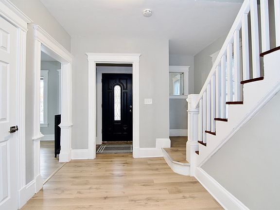 You will love this beautifully remodeled Colonial Style home offering four bedrooms 1 and ½ baths and 3 floors of living space! Step inside to find a welcoming vestibule that leads into the heart of the home — a newly updated kitchen featuring stainless steel appliances, white shaker cabinets and gorgeous quartz countertops. The first floor also includes a large, airy living room and dining room, perfect for hosting family and friends, as well as a convenient first-floor laundry area and half bath. On the second floor, you'll find four generously sized bedrooms, and a walk up to a fully finished space great for rec room, additional bedroom or cozy hang out space. Don’t miss out schedule a showing today.