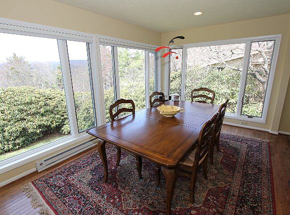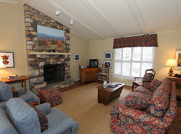 Mountain Cottage in town with a VIEW! Wonderful open floor plan with abundance of light. Spacious master suite on main level. Elk stone wood burning fireplace with raised hearth in cozy great room with vaulted ceiling. Large dining area overlooking the deck and view. Covered and open decks to enjoy mountain air. Most but not all furnishings included. Private back yard with luscious rhododendrons. Low maintenance property.