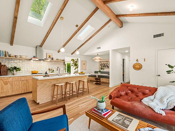 Welcome to this stunning, newly remodeled home located in the heart of Ojai, CA. This property boasts four bedrooms, three full bathrooms, and is situated in a peaceful cul de sac, just a 20-minute walk from central Ojai. The open-concept design features high beams that beautifully complement the modern kitchen and living area. The built-in dining nook is perfect for enjoying meals and creating memories. The home includes a family room and three bedrooms, along with a master suite that features a private bathroom with both a shower and standalone bath. The primary suite also includes a built-in walk-in closet and a creative room, perfect for a home office or hobby room. The entire home showcases great attention to detail, materials, and finishes. This home is a perfect blend of style, comfort, and convenience, making it a must-see Ojai home.