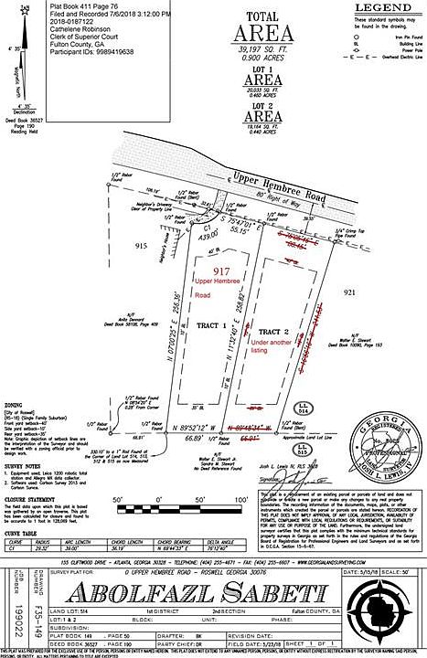 This is a vacant land. This home is located at 917 Upper Hembree Rd Lot 1, Roswell, GA 30076.