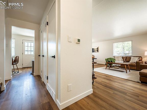 Welcome to this stunning new listing in the desirable Pleasant Valley neighborhood, where modern upgrades meet timeless charm. Step inside and immediately notice the brand new flooring throughout, adding a fresh touch to the entire space. The all-new interior paint and trim, combined with new fixtures throughout, create an inviting and contemporary atmosphere paramount to comfortable living. The home's exterior boasts a new roof (2022/23), providing peace of mind for years to come. The newer PVC sewer line (2020) and 150-amp electrical panel upgrade (2019) further demonstrate the attention to detail and pride of ownership you'll find in this home. The luxurious upgraded bathroom, featuring a tiled shower and new vanity, adds elegance and functionality. With four spacious bedrooms and two bathrooms, this home offers ample space for everyone. One of the unique highlights of this property is the usable flat roof with a visually stunning mountain view, perfect for unwinding after a long day or entertaining guests. The spacious yard provides the ideal setting for outdoor gatherings and seamlessly backs up to the picturesque Westmoor Park, giving the illusion of an even larger yard. Nestled in a prime location, the home is just a short walk away from a backside trail into the breathtaking Garden of the Gods and the historic Rock Ledge Ranch. Experience the best of nature and cultural attractions right at your doorstep. Don't miss this rare opportunity to make this exceptional property your new home. Schedule a showing today and imagine the possibilities that await you in this beautifully updated space.