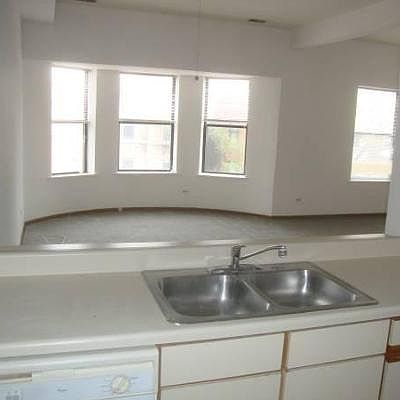 Huge open floor plan for living room and dining room. Modern kitchen, double stainless steel sink, dishwasher, central air/heat, bay windows, Large entertainment-sized rear deck., 11 foot ceilings, mini blinds, dual bath vanities and cabinets in bath. Fireplace, carpeted, recess lighting, ceiling fans, large closets, intercom. Laundry. Half a block from the elevated Red Line station. In the center of Wrigleyville's noted restaurants and nightlife!