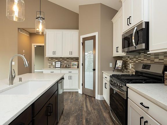 New Construction Rambler, nearly complete and Ready for Quick Move-in! Quality Details, Thoughtful Design and Beautiful Finishing Touches brought to you by Hebert Homes. Open Concept Floor Plan, perfect for Today's Lifestyle. Enjoy 3 Bedrooms on Main Level with 2 Bdrs in Lower Level Walk-out. Gorgeous Great Room boasts Vaulted Ceiling with Fan plus Amazing Fireplace with Alder Mantle, Crisp White Surround and Granite Accent! Super Stylish! Gourmet Kitchen offers Gleaming White Cabinetry, Glass Tile Backsplash, Large Center Island, Quartz Countertops with integrated Sink, Corner Pantry, Under-cabinet Lighting! Owner's Suite w/Walk-in Closet & Luxury Bath! Lower Level being finished will offer Walkout plus Daylight Windows, 4th & 5th Bedrooms and 3/4 bath.Great Cul-de-sac Location, Easy Commute Access, Large Lot with Sod and Sprinklers included. If you have been searching for Two Story Homes, consider this Rambler Style Home, you will Love what you Find Here!