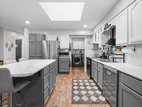 Open layoutNew kitchen appliancesKitchen skylightFully updated flooringHardwood floorsMetal roofQuiet fully fenced backyard
