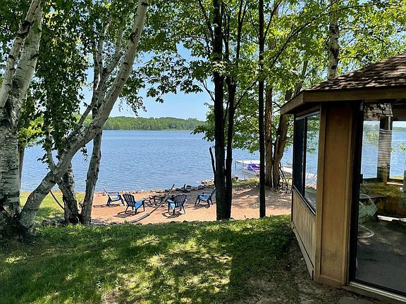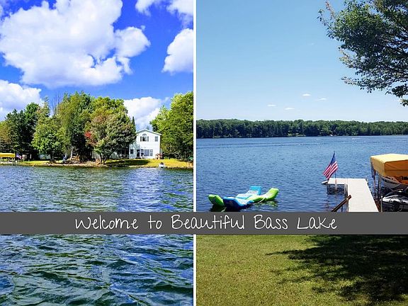 Welcome to the beautiful Bass Lake! Retreat to this amazing lake home offering 150ft of lakefront shoreline (2-PIDs), outstanding panoramic views, patio, rock landscaping along the shoreline, private beach w/ bonfire pit are all staples to make this your fabulous lake retreat all year round. Spacious floor plan, large windows brings in nature and lake views. Oversize 2-garage to store all the fun lake toys. Enjoy a relaxing morning coffee on the patio or Gazebo. Make this your next retreat away or permanent home.