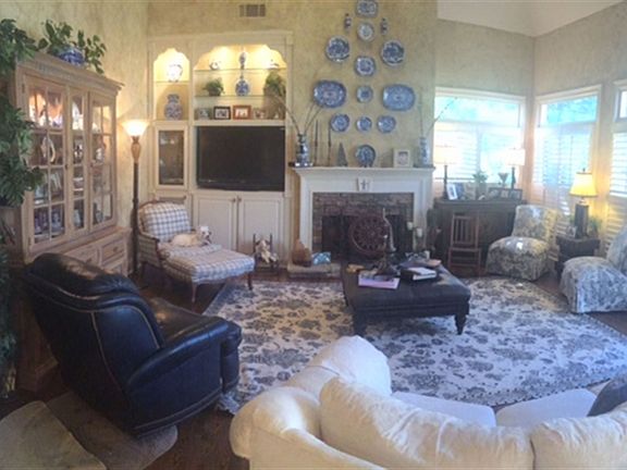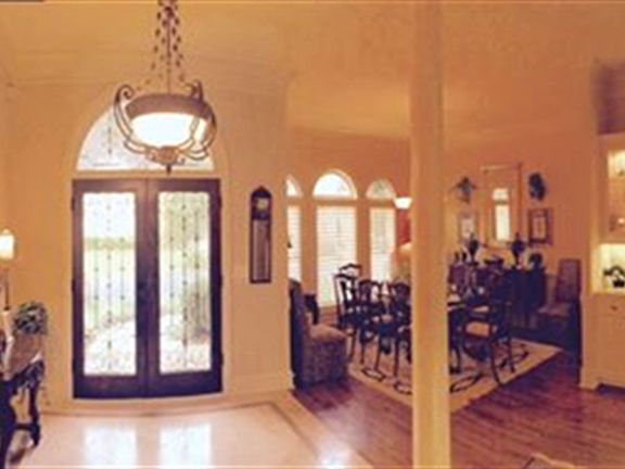 - Interior: Foyer - Entrance, Ceilings 9 Ft Plus, Double Vanity, Gas Logs, Pulldown Attic Stairs, Separate Shower, Whirlpool Bath, Bookcases, Garden Tub, Rear Stairs, Ceilings - Trey, Carpet