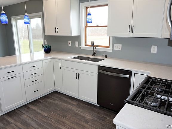 Welcome home! This beautifully remodeled vinyl sided, 4 bdrm, 2 full bath home is the one you have been looking for! Almost 2,000 square ft! The first floor features a new kitchen (2020), including white cabinets, quartz countertop w/ breakfast bar, built-in spice rack, new lighting fixtures (including recessed), and engineered vinyl plank flooring! Stove, refrigerator, dishwasher and microwave are all included! Large eating area with sliding door that leads to the deck and 1.3 acres of land and shed! Good size living room with wood burning fireplace (NRTC) surrounded by slate stone and a wood mantle, & more beautiful engineered vinyl plank flooring! Updated guest bath features a new vanity, medicine cabinet & ceramic tile flooring! First floor primary bedroom boasts an large closet & updated primary full bath, incl. vanity, mirror, lighting and flooring! All 4 bdrms have brand new carpet! The upstairs bedrooms are huge w/ large closets! Fresh paint throughout, and many solid core three panel doors! 2.5 car w/ newer door and attic storage! Extra wide driveway! Roof 2014!