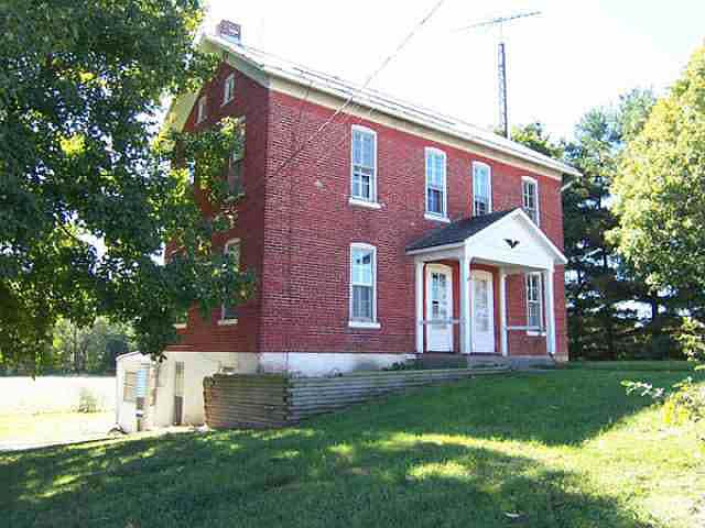 Private setting. Historical 2 story brick home with 4 bedrooms, 1.5 baths and walkout basement. Several outbuildings. Large red pole barn not included.