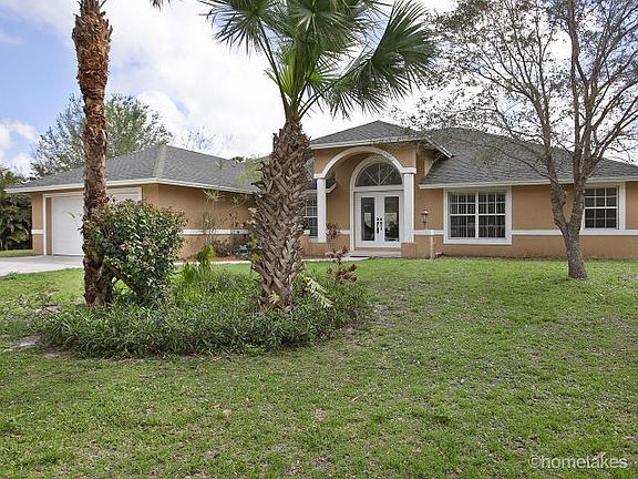 Your chance to own unique piece of a 5 acre private & tranquil property in Jupiter Farms. The 5 acres are made up of two 2.5 parcels boarddering a large beautiful lake:9170 Quail Trail & 9173 Mockingbird Trail. Build a separate home or guest house on the Mockingbird Trail parcel or sell the property to someone else. The Quail Trail parcel hosts a gorgeous 4BR, 3 full BA, pool, 2 car attached garage, situated on a private 30 Ft deep spring fed spring lake full of bass, bluegill, perch & catfish. Bright open floor plan with 20'' ceramic tile floors throughout (except master bedroom). Architectural archways and plant shelves, vaulted ceilings, large kitchen w/granite countertops & stainless appliances. Master BR has sliders overlooking the peaceful lake & patio/pool area, tray ceilings & walk