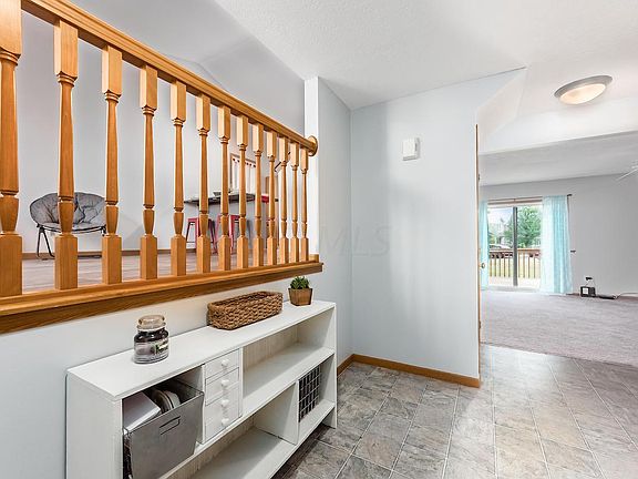 Beautiful Southern Point home w spacious back yard! Completely updated kitchen w new vinyl flooring, updated counter tops, back splash and SS appliances. Eat-in kitchen area w custom B-fast bar perfect for the busy family. 2nd level is perfect for separate livg space, large dining area or home office space. New carpet in entry level. Large master w vaulted ceilings, walk in closet and en suite. Basement offers ample storage space or could be used for teenager's headquarters! Huge back yard with no neighboring property directly behind the house. Wood deck in the process of being stained is perfect for summer BBQ space. Home includes water filtration system. Southern point community offers an easy drive to restaurants and shops in Grove City w easy highway access. Pickaway county tax
