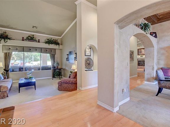 Amazing custom home on cul-de-sac! Original owner. Fully furnished. Quick access to I-215. Mountain views. Spacious kitchen has island, double ovens, breakfast bar, granite counters, & dining nook. Large backyard includes heated pool/spa, built in BBQ, covered patio w/exterior spurs & sound system, & custom shed. Roomy 2 bedroom guest house for in-laws or rental income. Garage features storage cabinets, workbench, epoxy floor, & ample lighting.