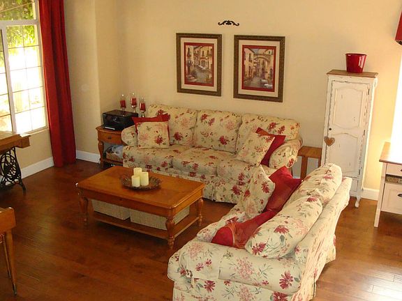 Gorgeous family home in Boardwalk community. This 4 bed 2.75 bath home features beautifully upgraded wood floors throughout the lower level with large, light and bright open windows with views of the front and backyard. Kitchen cabinets have been extended and trimmed with upgraded moldings. There is a guest bed and bath on the lower level to accommodate your guests or it could be used as a private office. Upstairs bedrooms have custom paint and wood moldings trimming the walls. Master bath features a separate tub and shower as well as a walk in closet. The home comes with washer, dryer & fridge so no need to buy new appliances. Neutral paint throughout the common areas with some slight accents, upgraded lighting and lush established plants in the front and backyard! Come & see this beauty!