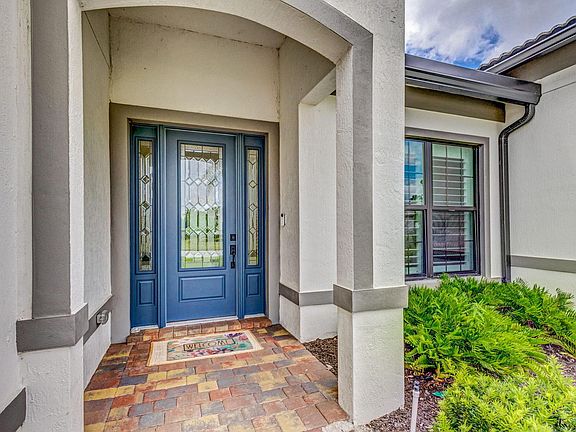 Unparalleled Elegance in this newer 2021, 4 Bedroom, 3 Bathroom with Custom Office Waterfront Home on an Oversized Lot in Prestigious Ancient Tree Community. This Distinguished Residence is the Epitome of Fine Luxury Florida Living. A Well Appointed Chef's Kitchen Features Top of the Line Stainless Steel Kitchen Aid Appliances, Gas Range, Custom Island, Upgraded Cabinetry and Wine Bar. An Open Floor Plan Accents a Great/ Dining Room Filled with Stylish Designer Features Like a Coffered Ceiling, Crown Molding, Wood Floors and Zero Corner Sliders that lead into Spacious Two Zone Screened Lanai Complete with Gourmet Summer Kitchen and Breathtaking Evening Sunsets. The Primary Suite is Adorned with Spacious His/Her Walk-In Closets with Built-In's and a Lavish En-Suite Bathroom. A Must See!!
