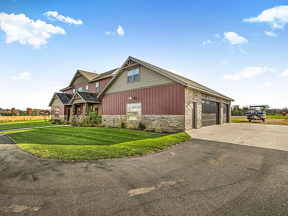 Welcome to this exceptional 4-bedroom, 3.5-bath custom home on over 9 acres on the Sauk River in beautiful St. Joseph! Built in 2018, this thoughtfully designed two story home offers 4,460 sq ft of living space plus a finished & heated 3 stall garage and finished bonus room. The main level features a luxurious primary suite, high vaults in living room, and a large office. The gourmet kitchen is a showpiece with custom cabinetry, granite countertops, a 9ft island, Wolf brand cooktop, double wall oven, and beverage cooler. Upstairs you’ll find a spacious family room, 3 bedrooms with walk-in closets, a Jack & Jill bath and vanity counters. The Outdoor living space is made for entertaining with stamped patio, pergola, built-in bar, hot tub, and fire pit overlooking the river. Many upgrades include in-floor heat in home & garage, 400-amp service, surround sound, Lutron smart lighting, Bluetooth speakers, sprinkler system, and more—all within walking distance to a new 95 acre park w/ walking path and a kayak launch.