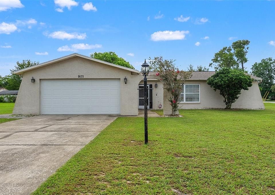 This Charming 2-Bedroom, 2-Bath - 2 Car Garage home sits on a spacious half-acre corner lot and offers the perfect blend of comfort, functionality, and outdoor living. Step inside to find laminate flooring throughout, split bedrooms, generous size kitchen, a brand-new AC system for year-round comfort, and tons of closet and storage space to keep everything organized. The heart of the home opens to a screened back porch, ideal for morning coffee or evening relaxation. This home also features a new garage door and windows ! Enjoy summer days in your in-ground pool, perfect for entertaining or unwinding in privacy. With ample yard space, there’s plenty of room for all your toys, pets, a garden - the possibilities are endless!