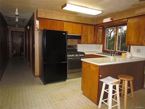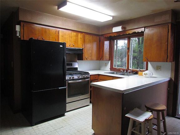 Make this 3 Bedroom hillside Ranch your own!! Situated on 1.3 acre lot, house has a great view from the front porch of Concord Crest Golf Course! Drive up to the 2 car attached garage that has separate electric service for compressor & welder, workbenches, loft storage, door to backyard AND it leads directly into the full basement w/ laundry area, HWT in 2017 & separate storage room! Basement leads up to eat-in kitchen that includes brand new stove & fridge. Large living room has front entry area and great space! Spacious bathroom down the hall before the 3 bedrooms. Updates include blown in insulation in basement & attic & new storm windows in 2017, new roof on house w/ gutters & chimney repointed in 2016, garage roof in 2011. Interior updates & finish work needed, great buy!