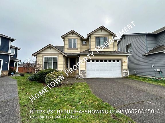 If you're looking for a 4 bedroom home, look no further! This gorgeous Meridian Campus beauty is move-in ready! Features include both formal and informal areas, with plenty of room to spread out. There's a cozy gas fireplace in the family room, breakfast nook off the kitchen, a formal dining room and butler's pantry. The kitchen is open to the family room and features all stainless steel appliances including electric stove, microwave, dishwasher, refrigerator. and plenty of of cabinet and counter space. On the lower you will find a spacious primary bedroom with en suite, including dual sinks, soaking tub, step in shower and large walk-in closet. French doors off the breakfast nook lead to the fully fenced backyard and covered patio. On the upper level of this bright and spacious 2 story home you will find 3 additional bedrooms, each with it's own walk in closet, There's an abundance of closet and storage space throughout. Powder room with pedestal sink and laundry room with washer/dryer hookups and shelving for additional storage. So much to offer, this bright and beautiful 4 Bedroom, 2.5 Bath home won't last long! NO SMOKING - NO ROOMMATES Pets negotiable with owner approval and pet rent of $35 per month per pet. 12 month minimum lease. Great NE Lacey location, close to parks, and area amenities. Just minutes to saltwater and the Nisqually Reach Nature Center . Easy freeway access and a quick 15 min commute to JBLM. To schedule a showing click on the following link: https showmojo. Please schedule all evening showings by 4:00pm and all weekend showings by Friday at 4:00pm, failure to do so may result in your showing not being authorized. This home is marketed and managed by Hometown Property Management. DIRECTIONS: I-5 S to exit 111, L. on Marvin Rd, R. on Willamette, R. on Campus Glen Dr, R. on Periwinkle Lp Year Built: 2010 Fenced Backyard No Roommates Parking 2 Car Garage Pet Rent $35/Month/Pet Stove/Oven Electric Washer/Dryer Hookups