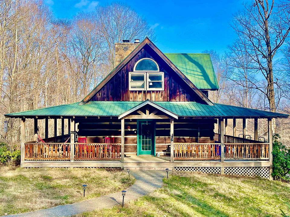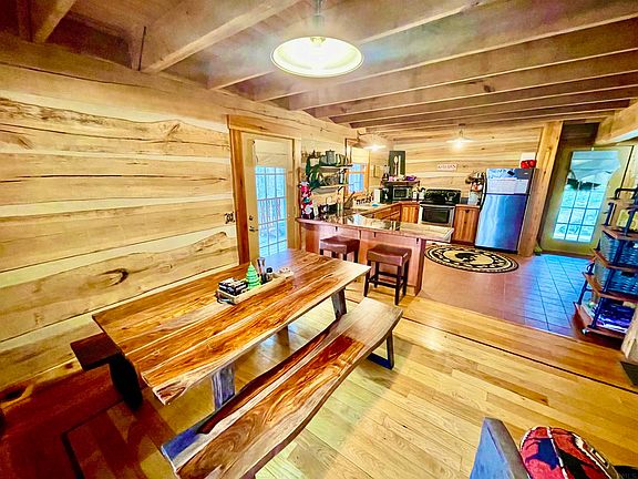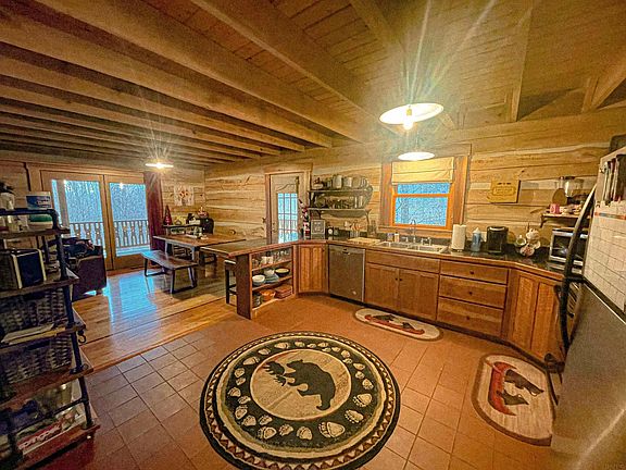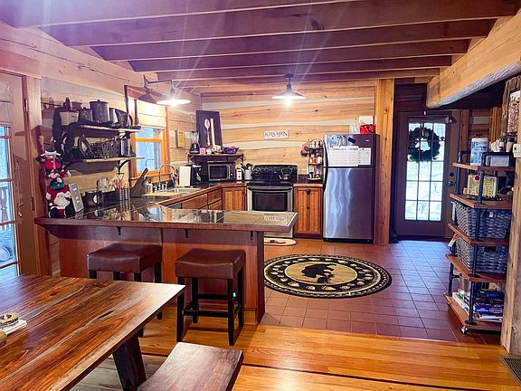 Beautiful well kept single family log cabin with a complete wrap around covered porch on 15 acres acres of land with a private pond! Walk into an open layout kitchen/dining room that opens up into an open living room with high vaulted ceilings! The top level lofted area acts as a second bedroom overlooking the living room with a pull out bed and private full bathroom. Enjoy the quiet in the lower level main bedroom with a full bathroom then walk out to a covered patio and a hot tub! The asking price includes all furnishings to be sold with the purchase of the house. New 24x24 ft shed built in summer of 2022. 2 parcels of land totaling 15 acres. Current owner primarily uses this property as a short term rental through Airbnb and Vrbo.