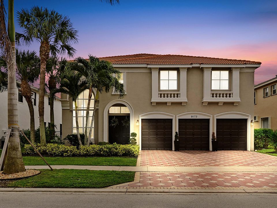 Step into a realm of sophistication with this unparalleled estate nestled in the prestigious enclave of Olympia. The Excelsior 2-story model, spanning an expansive 3941 SF, unveils a haven of luxury with 6 bedrooms, 4 baths, and a 3-car garage. The grandeur of this residence is immediately evident as you are greeted by beautiful marble floors throughout the ground floor, complemented by soaring ceilings and extended arched windows in the formal living and dining rooms. Culinary enthusiasts will be captivated by the cozy kitchen, adorned with exquisite wood cabinetry featuring crown molding, stunning quartz countertops, a glass tile backsplash, and top-tier appliances, including a double oven and a wine cooler. The kitchen's focal point is a substantial center island, complemented by a walk-in pantry and expansive windows that infuse the space with an abundance of natural light.