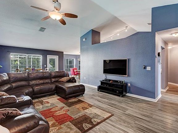 NO FHA OR VA FINANCING. Updated immaculate pool home in highly sought after neighborhood. Conservation to the right of the home makes it very private. New flooring throughout. Master bedroom has walk in closets and large bathroom with his and her sinks. Bedrooms are split plan, giving privacy to guests and family members. Cathedral ceilings and plenty of windows makes this home light and bright. 2016 new pool pump, new 5 ton A/C w 10KW heat pump, freshly painted interior and exterior, new paver driveway, walk and pool deck, new pool cage privacy screening installed. House has low E windows on the South and West Sides. There is a solar powered attic fan which reduces energy costs. This home has been impeccably kept.