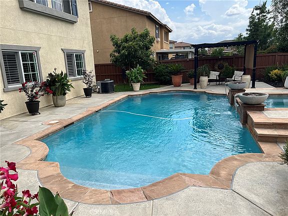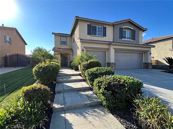This gorgeous pool home is waiting for you. Drive to Orangecrest and pull into the cul-de-sac before you notice the meticulously manicured landscaping. The hardscape is complete with stairs and the 3 car garage allows for cars and all of your extra belongings. Step inside the house and you'll see the great room with a place for everyone. The stairs are hidden away to maximize the space. Head into the kitchen. Have you seen a more eloquent kitchen? Not at this price. I'll leave it to your imagination until you see it. Outside is a large pool with spa. Two cabanas are the perfect place to relax and listen to the soothing sound of the waterfalls. The spa is big enough for you and your friends. Time to head back inside. Go upstairs and be surprised by the large loft.