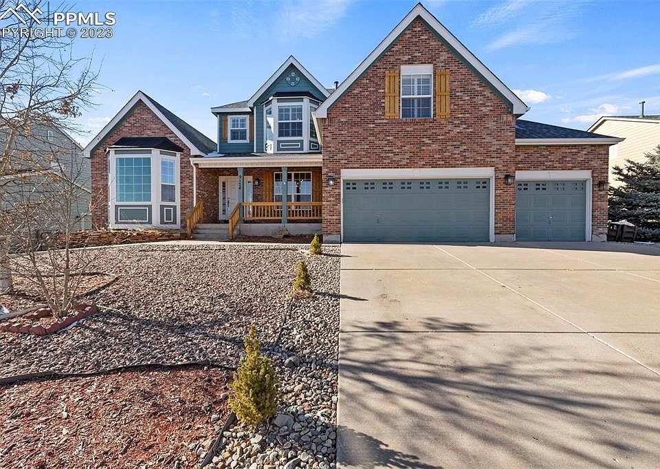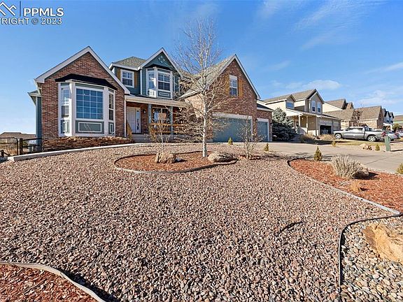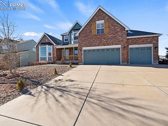 Welcome to this fantastic four bedroom, four bathroom home in Woodmen Hills— known for generous sized lots and homes with plenty of square footage! The living room boasts soaring ceilings, a cozy fireplace, and a cascade of windows that flood the space with natural light. This home has a main-level primary bedroom with vaulted ceilings, a walk-in closet, and a luxurious 5-piece en suite bathroom. Spread across over 4,800 square feet to include a gourmet kitchen featuring a double oven, a gas drop-in range, a sprawling island, pristine white cabinets, and elegantly neutral countertops. The main level is complete with a formal dining room, an office with built-in shelving, and a laundry room just inside from the garage. Need more space? Venture upstairs to discover three additional bedrooms and a versatile loft perfect for your creative desires. Say goodbye to temperature worries with the dual air conditioning system allowing tailored comfort. Looking for more personalized space? There's an unfinished walkout basement, ready for customization. And let's not forget the composite back deck offering stunning Pikes Peak views, while the lack of rear neighbors ensures tranquility, overlooking the neighboring community golf course.