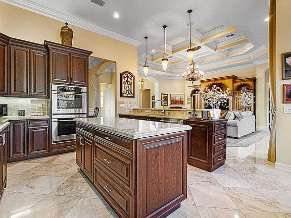 • Kitchen Island, Pantry, Walk-In Closet(s), Built-in Shelves, Split Bedroom, Volume Ceiling, Roman Tub, Great