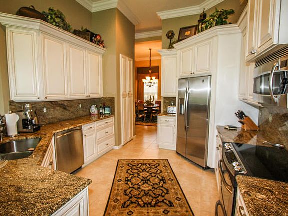3 BR/2.5 BA Leonardo shows better than a model. Enter through elegant double doors into foyer leading to open floor plan with tile throughout. Kitchen features 42'wood cabinets w/granite and upgraded appliances. Cafe area opens to 27' family room w/sliders from F/R and L/R opening to ext screened with serene lake and preserve views. Master bedroom suite features large his & hers custom walk-in closets, and bathroom with dual sinks, separate shower and Roman tub plus 9'x12' study area. Crown molding, Garage extended 4'; cent vac, Intercom, new A/C; accordion shutters. Enjoy the beautiful newly refurbished clubhouse. Community offers resort style indoor and outdoor salt-water heated pools, cafe, state-of-the-art fitness center, aerobics, billiards, cards, crafts.