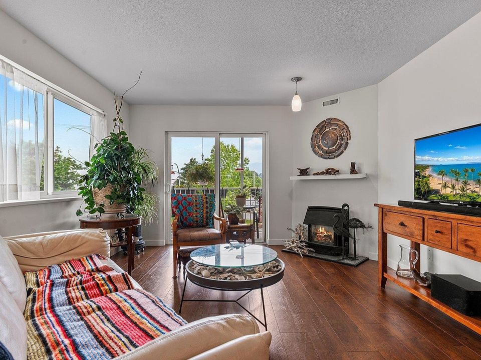 Spacious 1,101 sq ft corner unit in Lombardy Lane, a well-kept 55+ community in the heart of Chilliwack. This bright 2-bedroom home features a large primary with walk-in closet & ensuite, cozy gas fireplace, in-suite laundry, and stunning sunset mountain views. Enjoy a roomy kitchen with great storage, plus a nicely sized office room. Includes covered secure parking, Steps from the Leisure Centre, hospital, shops, pharmacies & more! The Building has seen many recent updates and offers a lounge, hobby shop & guest suite. Strata includes hot water, water/sewer, garbage, snow removal, gardening, strata mgmt. & natural gas. Book your private showing today!!
