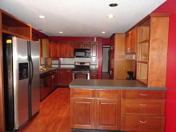 Very nice 4 BR, 3 1/2 BA custom built ranch on a private, quiet 1,3 acre lot. Almost 3100 sq ft including the partially finished walkout bsmt. Gourmet kitchen w/stainless appliances & cherry cabs, huge great rm w/cathedral ceilings & floor to ceiling brick fireplace, Florida room, large deck, concrete basketball pad & detached outbuilding. Needs minor TLC. See A2A remarks.