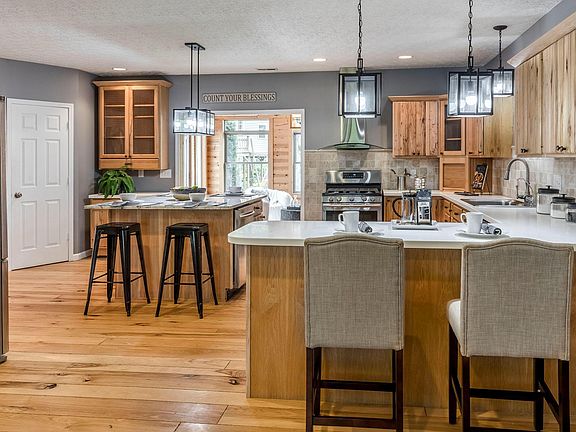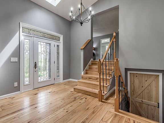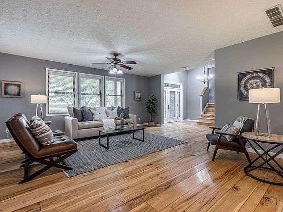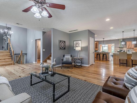 This stunning custom built 6 bedroom 5 1/2 bath split level home will not disappoint! Spacious master suite complete with private balcony, huge walk in closet, soaking tub and walk in shower. The gleaming hand hewn hickory flooring throughout, custom sunroom and large custom kitchen make this home a truly unique experience. 2 Laundry rooms, a 3 car attached garage and fully customized closets add to the already convenient layout. Just minutes to 161 and New Albany!
