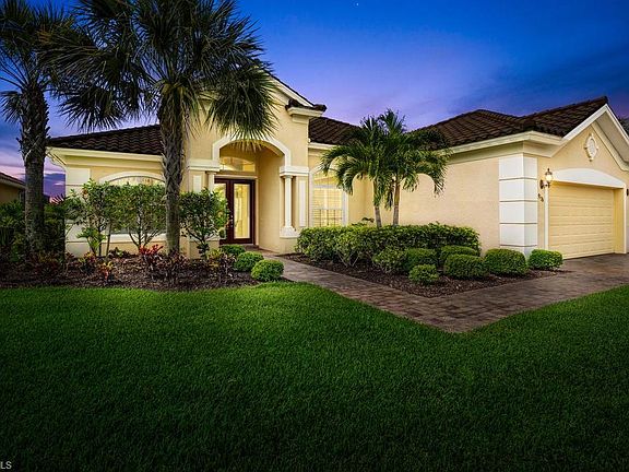 H.15847 - Experience SOUTHERN EXPOSURE WATERFRONT views from your expanded lanai and newly designed custom outdoor kitchen/bar with granite counter and refrigerator. Take advantage of the spacious backyard to build your own custom pool/spa to enjoy beautiful sunset views. Double glass doors welcome you into an open floor plan highlighted by hand scraped Hardwood floors throughout the living room, kitchen, dining room and Den/3rd bedroom. The Master Suite boasts a tiled walk-in shower and His & Her closets. Plantation Shutters decorate the windows throughout this home. An Extended Garage and a new A/C are a plus! The Quarry is an amenity rich community with Beach Club, Tiki Bar, Spacious Resort Pool. Separate Lap Pool conveniently located near Fitness Center and Motion Studio which hosts Wellness Classes, Yoga, etc. Pickle ball, Bocce, Tennis "clubs" provide a wide variety of social options. Private renowned Hurdzan-Frye Golf Course with limited memberships available.