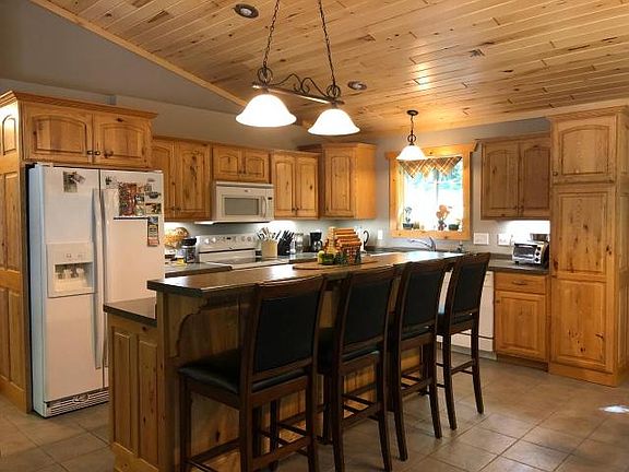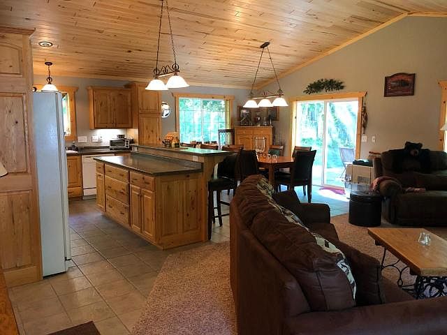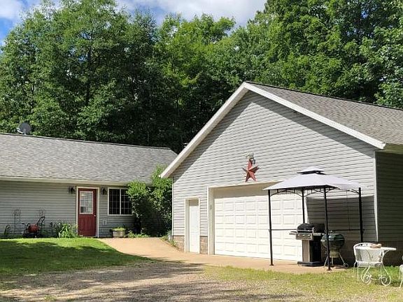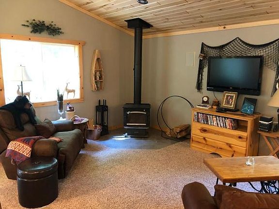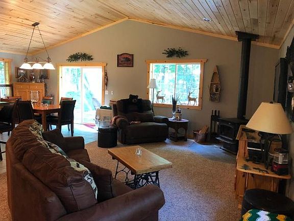 This home screams rest and relaxation on a private, secluded and wooded 1.6 acres with beautiful views of Bearskin lake. The lot is elevated providing an extra level of seclusion. The home is on a dead end road less than one mile from the Bearskin Trail. The modern home features an open concept kitchen, living room and dining room with cathedral tongue and grove wood ceiling. Walk out the patio door onto a paved patio in the peaceful back yard. The home is being sold fully furnished with newer furniture inside and out. The home has surround sound system inside and out and a hardwired back-up generator. If the in floor heated slab does not keep you warm, then the wood burning fireplace will. Plenty of closet space and extra storage in the 3 stall garage. This well maintained home is waiting for you to be the next owner.
