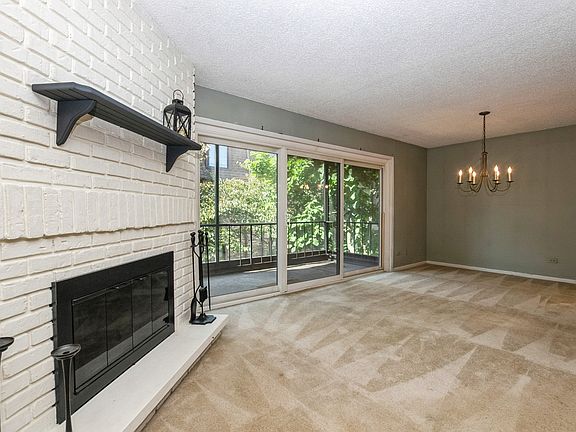 Only unit currently available in Woods Edge. This two bedroom, two bath with in-unit laundry and one-car garage will not last long. Situated in one of the two most beautifully landscaped buildings with pool view. Beautiful screened-in balcony includes storage closet and looks out at the gorgeous flowers and trees. Wood-burning fireplace is the focal point of the living room. Enjoy the comforts of a master bedroom with walk-in closet and ensuite. Many updates including new furnace and a/c (2022), windows and three-panel sliding glass door. Updated kitchen with new refrigerator, granite counters including breakfast bar and sink with views of the pool. This complex is a hidden gem in Palos Hills. Enjoy the gorgeous pool, club house with party room and sauna. Easy access to expressways, Moraine Valley Community College, shopping, dining and Palos Forest Preserve. Request an appointment now, before it's gone.