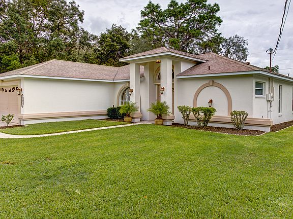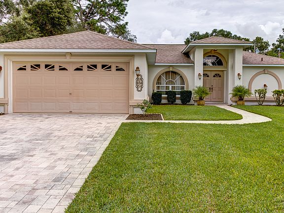 At every glance you will notice the attention to detail this lovely home offers. Everything has been up dated right down to the designer light switches! Double entry doors take you into the living area with 18X18 tile flooring. Soaring vaulted ceilings and planter shelves bring in an open and decorative feel. The new gourmet kitchen will delight your inner chef! Granite counter tops, stainless steel appliances, custom wood cabinetry with lights underneath, and a large pantry complete this gorgeous kitchen. Decorative wood pillar structure, and bay windows compliment the café area, perfect spot for a quick bite! Warm wood flooring flows, and French style closet doors consummate all the bedrooms. Two out of Four bedrooms boost crown molding, and master has his and hers closet with custom shelving. Master bath with updated dual sinks, and tile flooring. Outside, pavers extend up the driveway, walkways, sidewalks, and screened in lanai, creating wonderful curb appeal. Screened in lanai is the perfect area for relaxing, or have a family bbq on the patio area. Take advantage of all that this wonderful home has to offer! Call today!