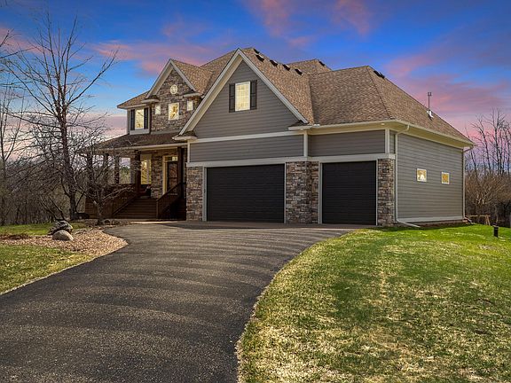ATTENTION. TO. DETAIL. This home is custom masterpiece and a pure 10 out of 10. Picturesque setting in Monterey Heights - premier executive estates in great Lakeville location and in top tier ISD194 schools. Serenely situated outside of the hustle, but close enough to make it where you need to be quickly, but that begs the question: why leave at all? Enjoy panoramic views of 40 acres of preserve land from sunrise to sunset out of copious, sizable & strategically placed windows or from the wrap-around porch or deck. Stunning floorplan melds function and style. 13 foot+ ceilings, illuminated pan vaults, open kitchen, river stone clad gas fireplace...all as impressive as they are cozy. Walkout basement with wetbar. Superb mudroom/laundry. Bonus room! Refreshed spaces included primary suite full bath, kitchen, basement, deck and more + new HVAC, exterior paint, flooring. Truly well maintained! OVERSIZED 4 stall garage with mezzanine. A feature list too long to do justice - come and see!