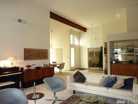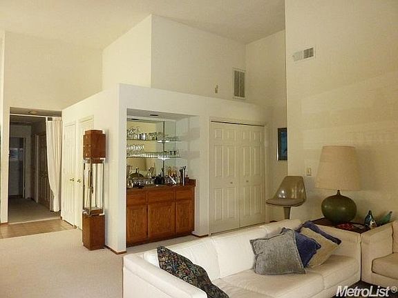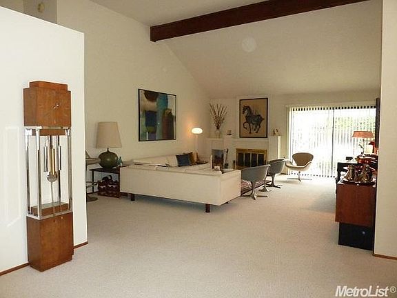Lovely single story home in a gated community featuring high cathedral ceiling, lots of windows, formal living room and dining room. Delightful sunny breakfast nook with all tile kitchen. 2 bedrooms, plus a den off the living room. Large master bedroom with sliders to private patio, two closets, all tile master bath with extra large shower and two sink vanity. Gas fireplace. Covered patio with lush landscaping. Community pool and spa area. Convenient to American River and bike trails.