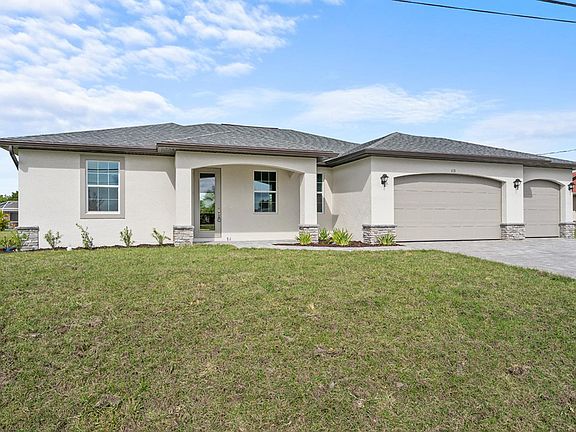Grand St. Augustine" floor plan. Beautiful 4 bedroom home with 3-Car garagel. Home includes a 1 yr warranty and a 10 year structural warranty! Open floor plan with 9'4" ceilings and 10' Trays. Also featuring a center island kitchen and 8 foot doors throughout. Spacious living room leads to large covered lanai to enjoy the SW Florida lifestyle! Features Include: Concrete Block Construction and Wood Frame Interior, Under Truss Lanai, Lenox 14 Seer high efficiency AC system, Moen plumbing fixtures, Dimensional Shingles, PGT Low E Insulated windows, cabinets with soft close doors, Granite Counters in Kitchen and Bathrooms, Stainless Steel Kitchen appliance package, colonial style raised panel doors, Electric garage door opener, 18" tile flooring in main living areas , Stone Accents on front elevation of the home, irrigation system, epoxy coated garage floors. Pictures shown are of a completed home and features may differ. You will not find another new construction home at this price with this quality of construction!
