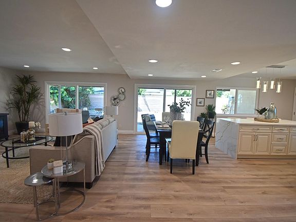 This newly remodeled inside-out residence is located in a highly sought-after Fountain Valley neighborhood. Home offers 4 bedrooms and 2 baths. Welcome guests with this open floor plan home. The living room with a cozy fireplace and sliding door opens up to the backyard. Brand new kitchen with center island. The dining area is in between the kitchen and the living room, making entertaining family and guests easy. Brand new roof, new recess lighting, and new laminated floor thru-out. All bedrooms with mirrored closets. Master bedroom comes with his and her closet. Backyard with covered patio and block walls surrounding. The long driveway leads to a 2-car attached garage with direct access. Conveniently located, close to Fountain Valley High School, churches, supermarkets, and just minutes to beaches and Bella Terra. Hurry and make this yours! Tenant pays for water, electric, gas, and trash pickup. The tenant is responsible for maintaining the front the back yard lawn and plants No smoking and pets are allowed. Unfurnished rental