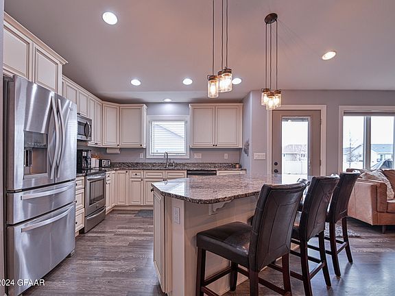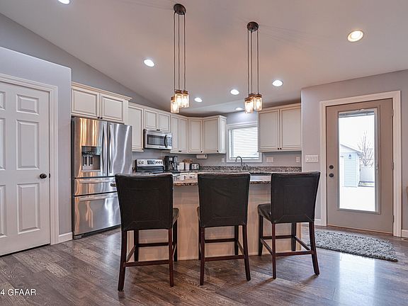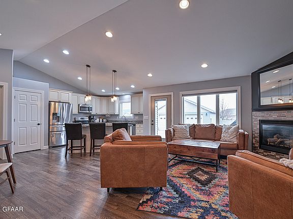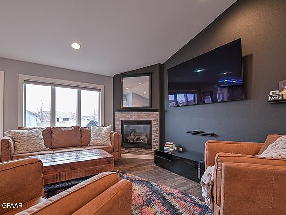 line kitchen, stone counters and custom cabinets, open-concept living space warmed by a gas fireplace. 5 bedrooms, 3 bathrooms, and a sprawling South facing fenced back yard, and maintenance-free deck. Unwind in the primary suite's