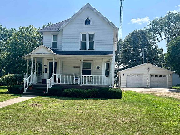 Relax and watch the time go by while resting on the front porch. As I walk into the house I observe the oak staircase , oak woodwork, and pocketdoors. Newer windows and many updates. The main floor has the living room, parlor, dining room, kitchen, and laundry room. Enjoy your morning coffee at the kitchen bar or enjoy a formal meal in the dining room. Proceeding to the 3 bedrooms and full bath on the upper level. Large size bedrooms and closets. The lower level has stone walls and concrete floors, in good condition. Double detached garage with a work shop area. The yard offers many opportunities for growing a garden, playing sports, flowers beds, or visiting with the neighbors.