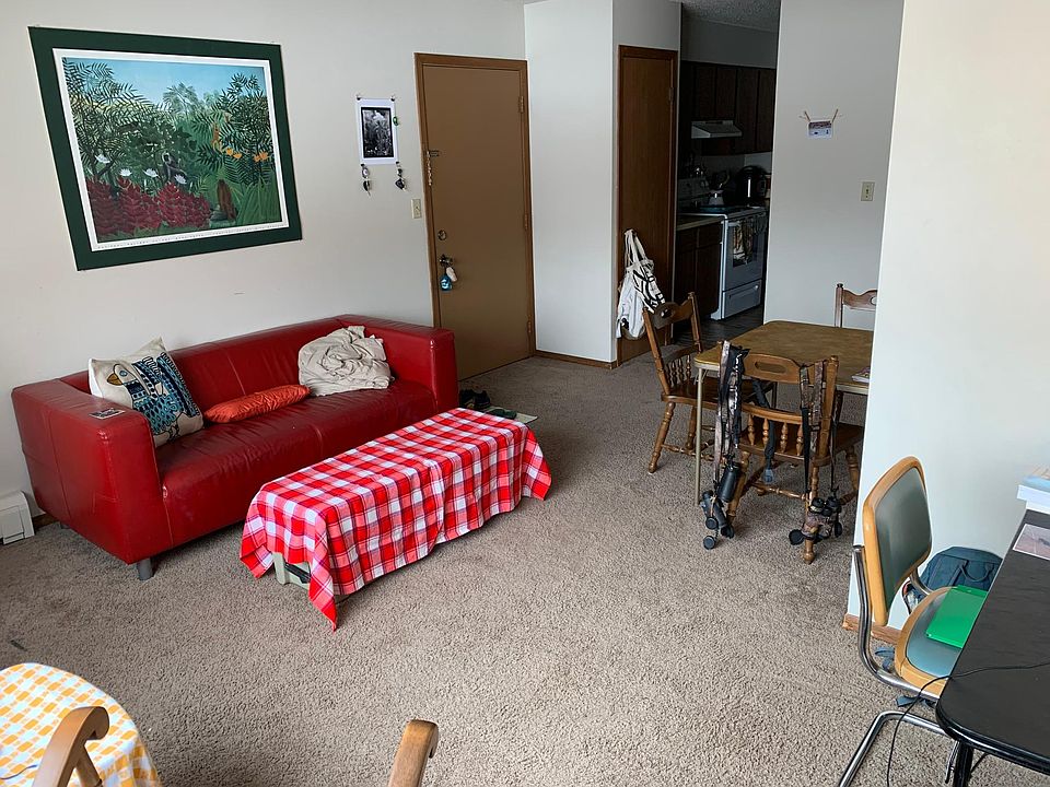 Available until end of lease in July 2020. Date of availability could be earlier, depending on renter's needs. ~600sq. ft. plus a storage unit in the hallway that is ~5x5ft. Lots of natural light with large east-facing windows and one north-facing window that lets in a surprising amount of light. Large, wall-length closets in both bedrooms as well as a closet in between the two bedrooms and a coat closet just inside the door. No pets. Apartment is close to all major amenities; HyVee two blocks away, Coral Ridge Mall 5 blocks, tons of restaurants within walking distance, a nice nature area with biking and hiking trails right across highway 6, and a 10-15 minute drive to downtown Iowa City. Some furniture, including a leather couch, may be included if prospective renter is interested. Owner pays heat and water. Tenant pays electricity and internet (~$60/month)