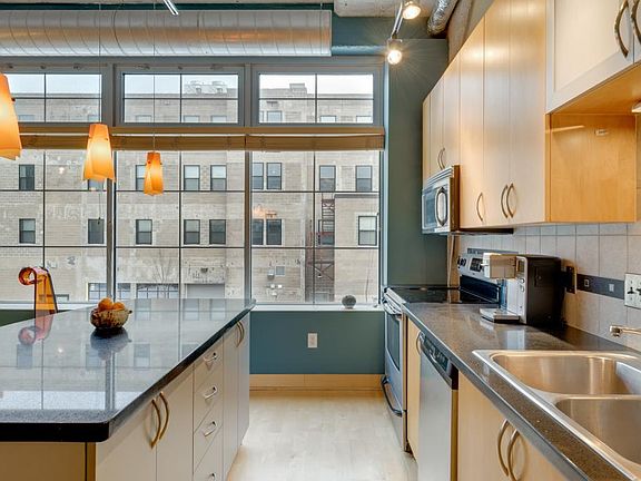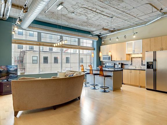 Turn Key Condo in historic 918 Lofts in North Loop. Nicely appointed kitchen w/ granite and center island. 11 foot ceilings expose original concrete pillars and oversized windows allow lots of natural light. Master BR w/ private bath and 2nd open elevated BR could be used for an office or entertainment. One underground heated parking space w/ 2nd surface spot plus storage locker. Awesome location close to restaurants, Target Field, shopping, countless conveniences.