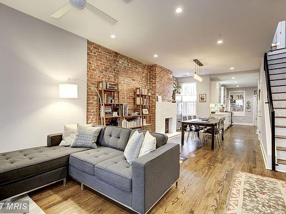 Exquisite rowhouse w/2 fully renovated levels. 2 BR, 2.5 BA. Open main w/ LR, DR, chef's Kit w/ss appl & granite, half bath. MBR w/WIC & private full BA w/glass shower. Full hall BA w/stacked washer/dryer. Lovely vintage details, skylights, rich HW floors throughout. Front patio & private backyard w/garden & secure parking. Blocks to H St, Whole Foods. 1 block to DC Streetcar. 1/2 mile to Metro.