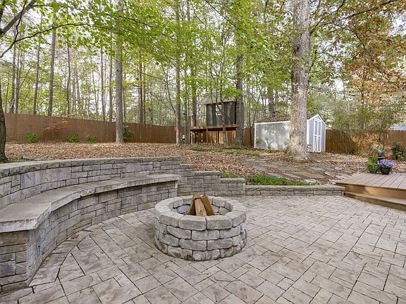 Desired location nestled close to Downtown Cary with easy access to greenways, parks, restaurants and shopping. Serene, wooded lot in a cul-de-sac, with professional landscaping and fenced in backyard with an expansive wood deck, unique treehouse, shed for storage and a custom stone patio with a fire pit! Step into the living room with marble encased wood-burning fireplace, and bright white kitchen with upgraded appliances and granite countertops. Relax in the recently renovated owner's bath with dual rainfall shower, upgraded lighting and window treatments throughout.