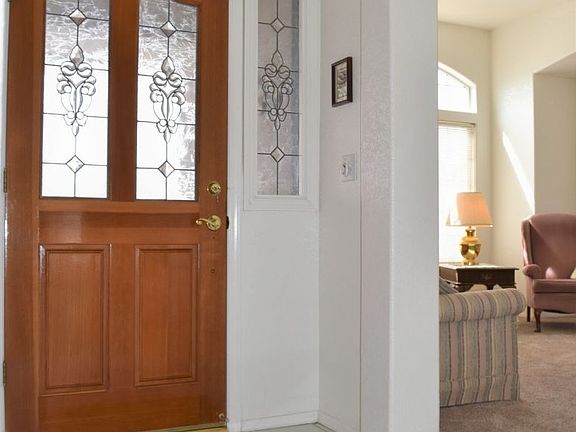 Low maintenance front yard with large driveway and RV parking. Tiled entryway with beautiful front door. Formal living room with high ceilings and gorgeous front window. Family room features a wet bar, brick fireplace with hearth, skylights and french door to rear patio. Galley style kitchen with tile counter tops, breakfast nook with windows and newer stainless steel stove/range and microwave/hood. Formal dining off of the kitchen with a lighted chandelier and Mohawk hardwood flooring. Carpet adds comfort to all 4 bedrooms. Hall bathroom includes a large tiled vanity, linen cabinet and tiled shower surround with tub. Spacious master bedroom with walk-in closet and french door to rear patio. Large master bathroom with soaking tub, tiled walk-in shower with glass door, and tiled vanity with dual sinks. The rear covered patio is perfect for those summer evenings. Large lawn with surrounding flower beds and block wall fencing all around. 2 brand new evap. coolers ground mounted with interior upducts. 3 Car garage (2 Car has a newer opener). Must see!