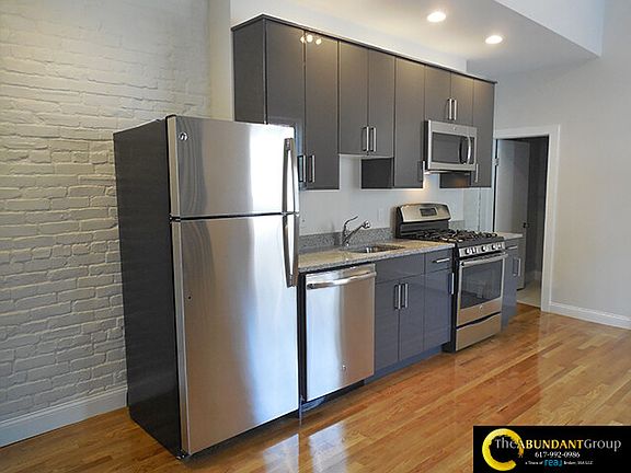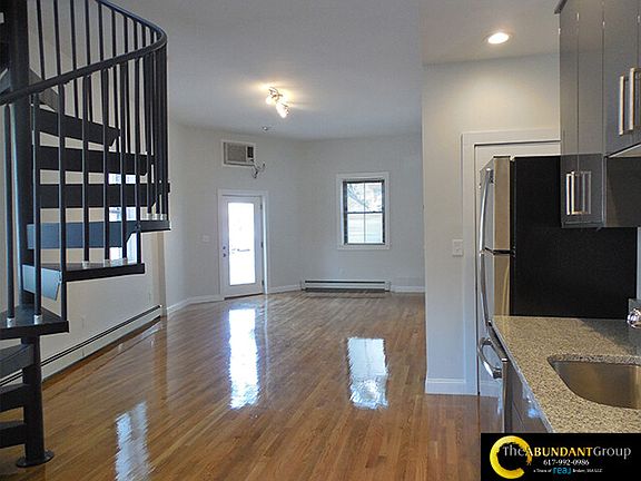 Available NOW, this stunning 3-bedroom, 1.5-bath duplex apartment offers 1,050 sq ft of modern living space with heat and hot water included in the rent. The open-concept kitchen and living area features high ceilings, recessed lighting, gleaming hardwood floors, and a striking metal spiral staircase leading to the second floor, where all bedrooms and the full bath are located. The sleek, ultra-modern kitchen boasts high-gloss cabinets, granite countertops, stainless steel appliances (including a space-saving microwave), and flows seamlessly into the spacious living area. Enjoy the convenience of an in-unit washer/dryer, through-the-wall A/C on the lower level, and additional on-site laundry. Parking is available and on-street, and cats are welcome. Disclaimer: Prices and Availability are subject to Change. Pictures in the Advertising May NOT be of the actual unit but will represent the unit in its likeness. The Abundant Group a Team of Real Broker MA, LLC Equal Housing Opportunity