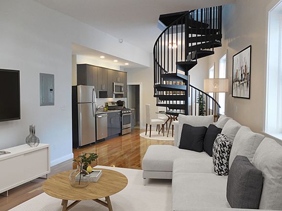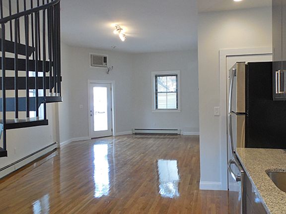 Amazing 3BR, 1 & 1/2 BA duplex apartment featuring a stunning open kitchen/living room with high ceilings, recessed lighting, in -unit laundry, and gleaming hardwood floors. The kitchen features high gloss, ultra modern cabinets, stainless steel appliances (including space saving microwave), and granite countertops. Access the three bedrooms and full bathroom on the second floor by climbing the metal spiral staircase in the middle of the expansive first floor room. Rent includes primary heat and hot water. Starry internet Service available in the building. Through-the-wall A/C unit installed in lower level. Laundry room on site. No dogs. Heat and Hot water included in the rent. Unit is available for a summer lease until 8/31 at this price. Price will increase for 9/1.