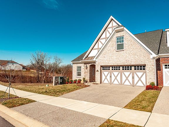 This beautifully maintained duet home in the highly desirable Millstone community just north of Nashville. This move-in-ready home offers low-maintenance living with no direct neighbors on one side and a wooded common area behind. With no steps leading into the home or out to the covered back patio, this property is designed for easy accessibility and comfort. Step inside to find a spacious and thoughtfully designed main level featuring an open floor plan with upgraded details throughout. The primary suite, located at the back of the home for added privacy, boasts a large en-suite bathroom complete with a frameless glass walk-in tile shower, double vanities, upgraded mirrors, and a walk-in closet. At the front of the home, the guest bedroom is conveniently situated next to a full guest bath. There is a flex room that is currently being used as a music room, but could easily be transformed into an office, dining area, or hobby space. The kitchen features elegant white shaker-style cabinets, it offers ample storage while maintaining a timeless look. The granite countertops provide both durability and beauty, complementing the tile backsplash. A large island serves as a versatile centerpiece, perfect for meal prep, casual dining, or entertaining guests. Equipped with a gas stove, this kitchen is a dream for any cooking enthusiasts. A spacious pantry with extra shelving ensures that organization is effortless, providing plenty of room for all your kitchen essentials. The wood-tread staircase leads to a huge bonus/flex room, offering endless possibilities. Upstairs, you'll find a large third bedroom with a full bathroom, making it perfect for guests or a private retreat. The covered patio is the perfect spot to unwind while enjoying views of the wooded common area. This space is already wired for a TV, has a ceiling fan, and is ideal for relaxing. The home features a large two-car garage. The community offers a pool, clubhouse, fitness center, playground, & sidewalks.