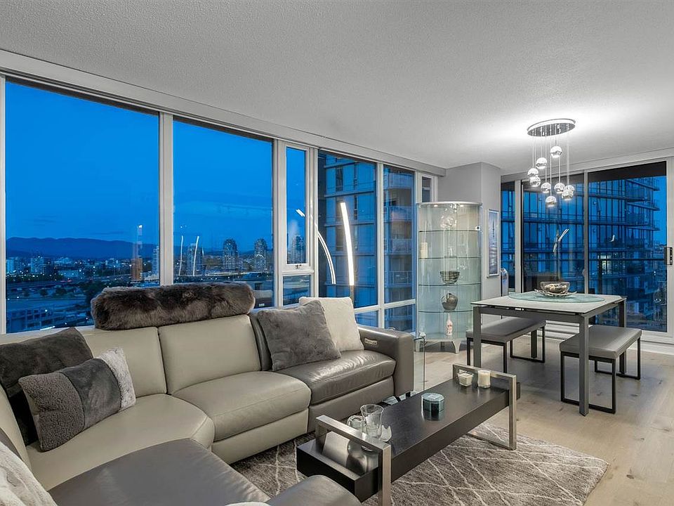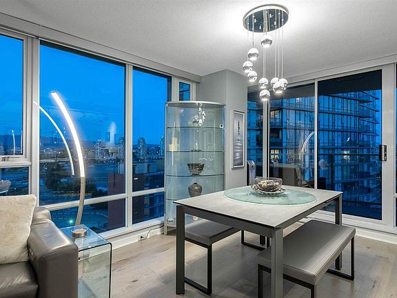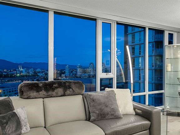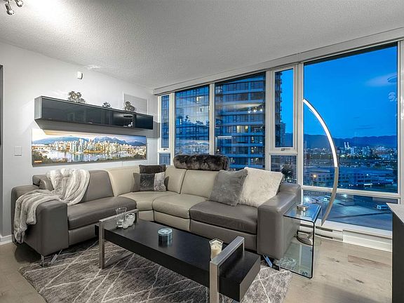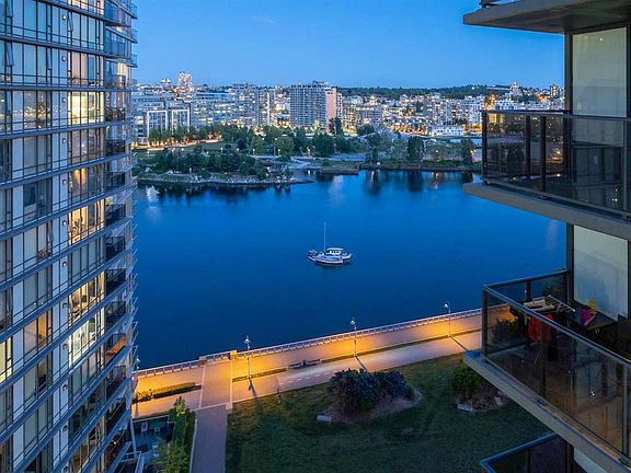Live in a quiet corner of the city that feels like a park! Located directly on the Seawall and minutes to restaurants, entertainment and all amenities including groceries, bank, pharmacy and more you have everything at your doorstep. Close access to transit (bus, Canada line and aquabus, seabus) and boasting water, mountain and city views! Modern open concept home with floor to ceiling windows throughout and fully updated. Cold, filtered A/C for hot, humid summer days. A spectacular list of renovations include lighting, Maple flooring in entire home, custom closets, custom built-ins, electric blinds and your own custom office in den. Kitchen counters, cabinets, sink and custom glass breakfast bar. Extras include Air Conditioning, 2 Parking (1 EV) , 1 Storage Locker. Pets & Rentals Allowed!
